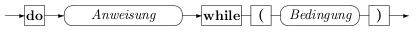 Sowohl while als auch for fragen zu Beginn der Schleife ab, ob die Bedingung zutrifft. Es gibt aber Anwendungsfälle, wo die Frage nach der Wiederholung erst am Ende der Schleife relevant wird. Ein typisches Beispiel sind Eingaben, die so lange wiederholt werden sollen, bis der Anwender eine gültige Antwort gegeben hat.Im Gegensatz zur while-Schleife wird die do-Schleife mindestens einmal durchlaufen. Die Bedingung wird am Ende geprüft.