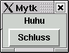 Dieser Ausflug in die Welt der grafischen Programme kann natürlich das Thema nicht völlig erschöpfen. Es macht aber einfach Spaß, wenn man sieht, wie schnell man mit Perl grafische Oberflächen erstellen kann.Um mit Perl X-Clients zu schreiben, bedienen Sie sich des Moduls Tk. Ursprünglich wurde Tk für die Skriptsprache Tcl entwickelt. Aber auch mit Perl können Sie Tk benutzen. Das folgende Beispiel erstellt ein Fenster mit einem Label, also einer Anzeige für Text, in dem das Wort >>Huhu<< steht. Darunter erscheint ein Button mit der Aufschrift >>Schluss<<, der das Programm beendet.