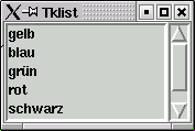 Relevant für die Funktionalität sind die Optionen -variable und -value. In der Variablen $radvar legen die Radiobuttons nicht nur ihren Wert ab, sondern stellen anhand der Variablen auch fest, ob sie angewählt sind oder nicht. Dazu hat jeder Radiobutton einen eigenen Wert, die hinter in der Ressource -value abgelegt ist.Listbox