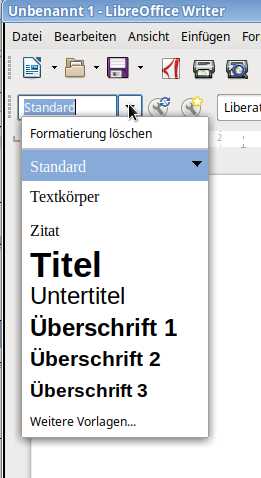 Die Vorlagen, die der Writer zur Verfügung stellt, finden Sie hinter einer