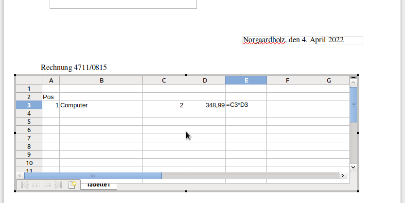 - Sie können in eine Textverarbeitung eine Tabelle einfügen. Die Textverarbeitung ermöglicht die Briefgestaltung, die Tabellenkalkulation die Rechnung. Damit lassen sich beispielsweise Rechnungen erstellen.